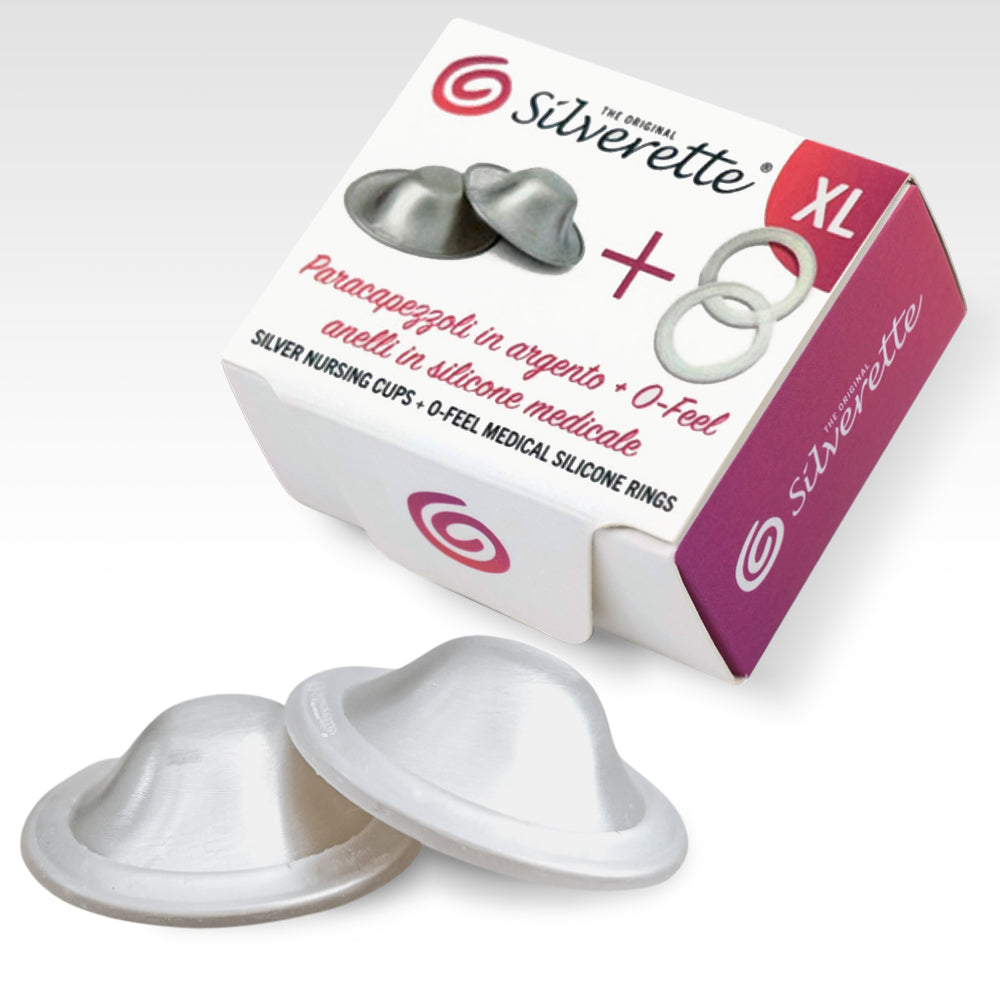 Silverette® with O-Feel™ combines the original silver nursing cups with a soft silicone ring for extra comfort while breastfeeding or expressing—no creams, no chemicals.